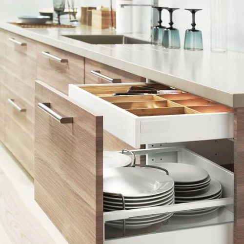 Herrajes de primera linea. Bisagras «Blum» y correderas telescópicas reforzadas de cierre suave.