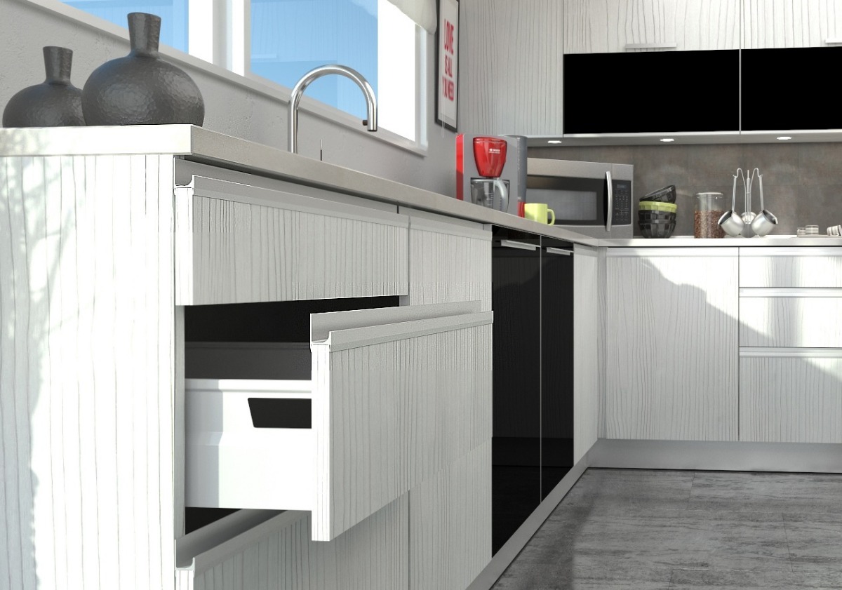Terminación en «ABS» o «METAL» y cuatro tipos de aperturas: «Tirador»; «J»; «Gola» y «Push».